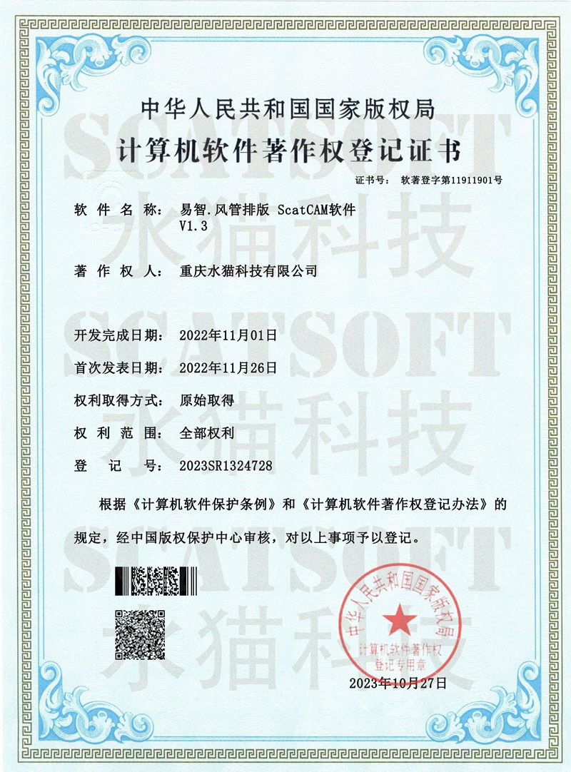 易智风管排版(ScatCAM)著作权证书